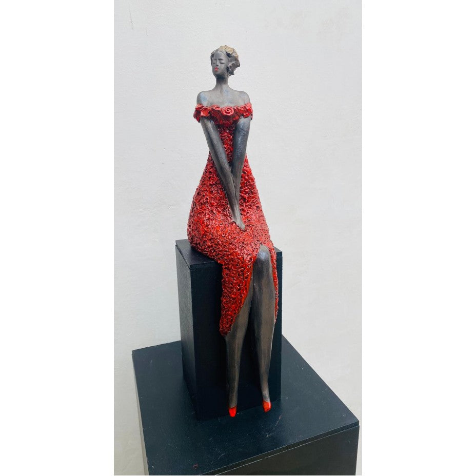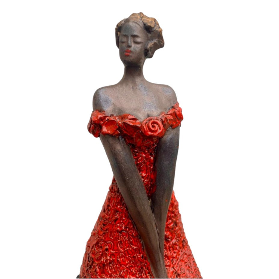 Keramisch beeld “Attention” – incl. houten sokkel – handgemaakt kunstgeschenk – 43x10x11 cm