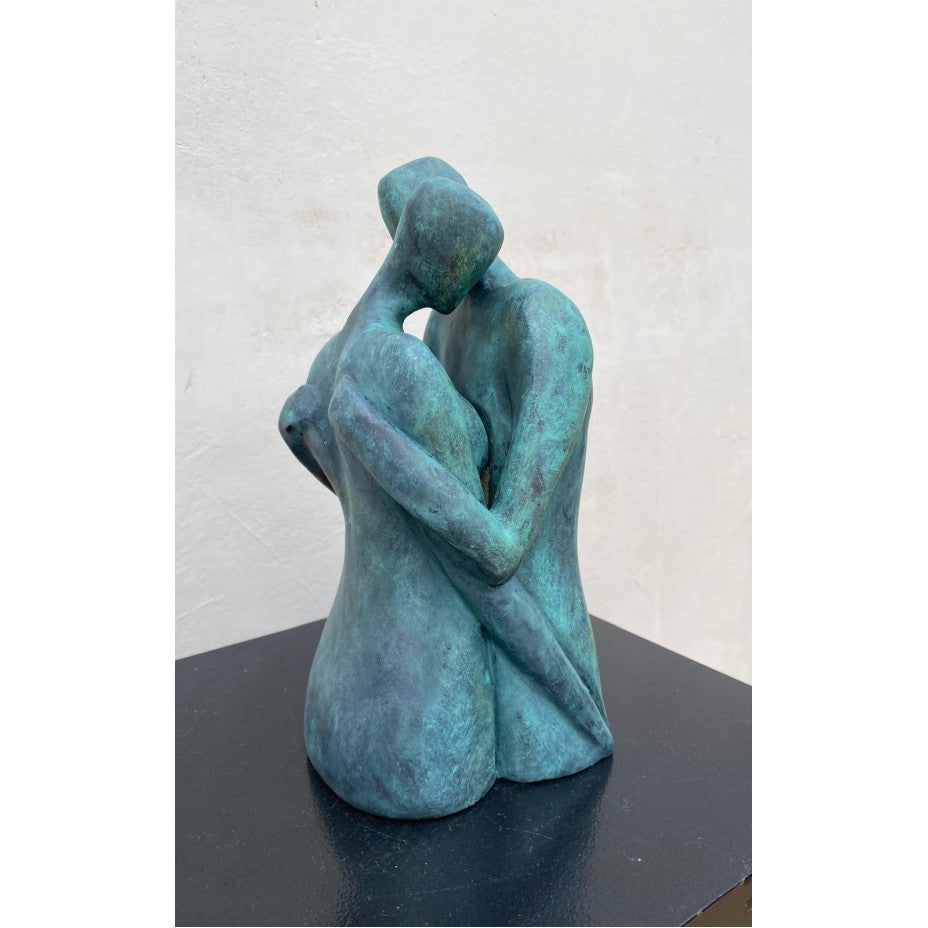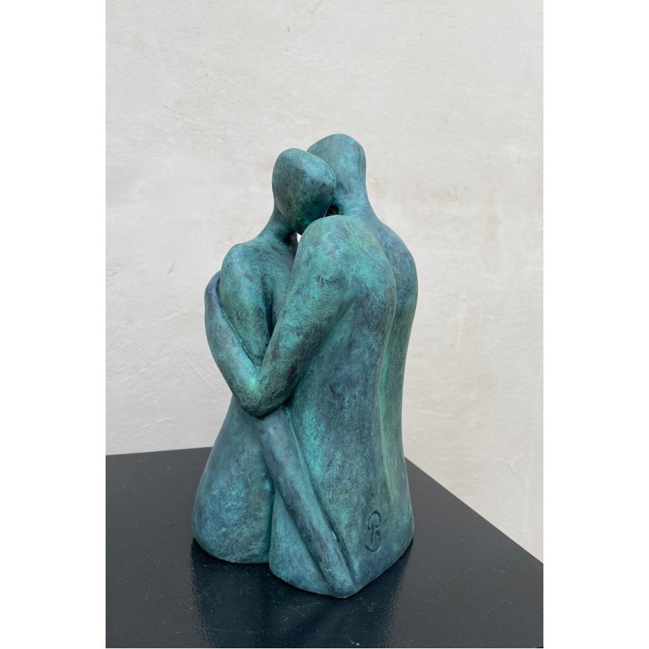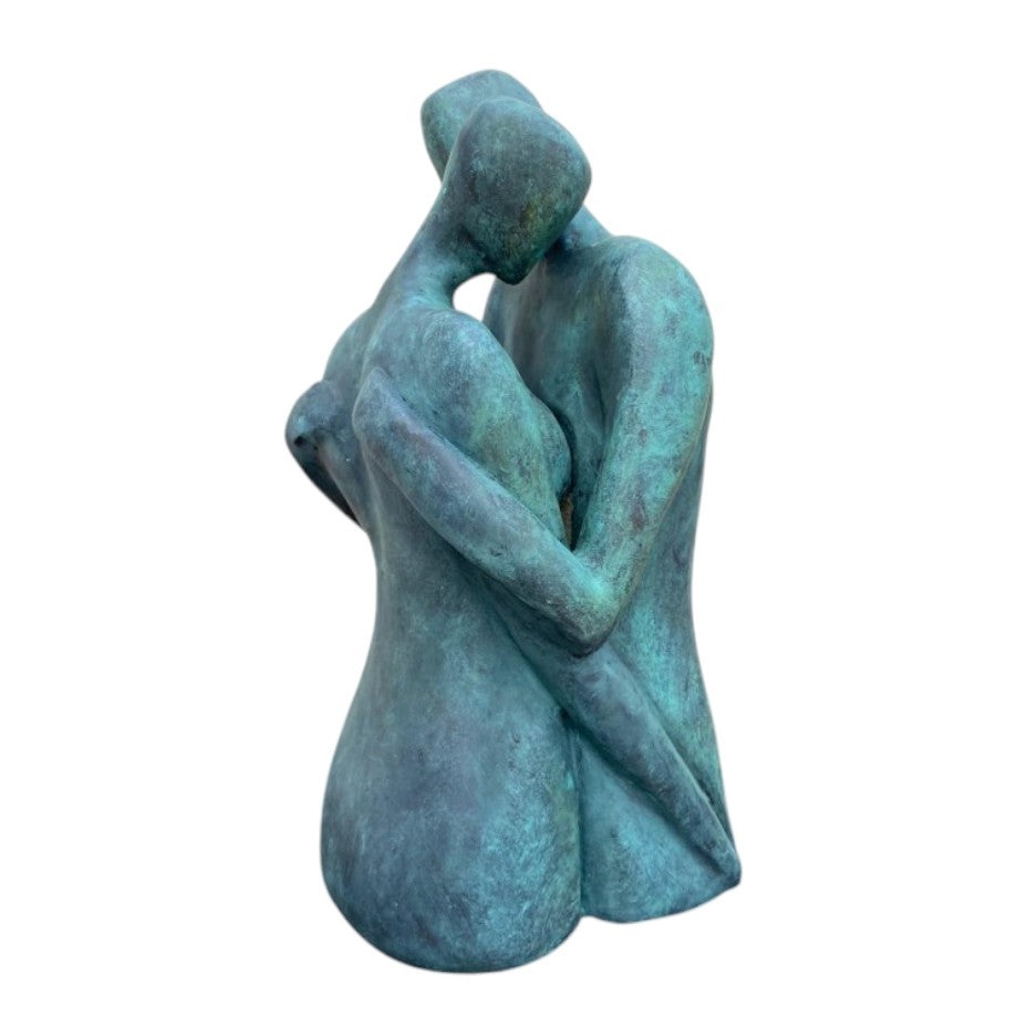 Keramisch beeld “Liefde” – handgemaakt brons‑groen kunstwerk – perfect cadeau – 22x10x10 cm