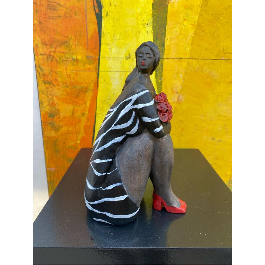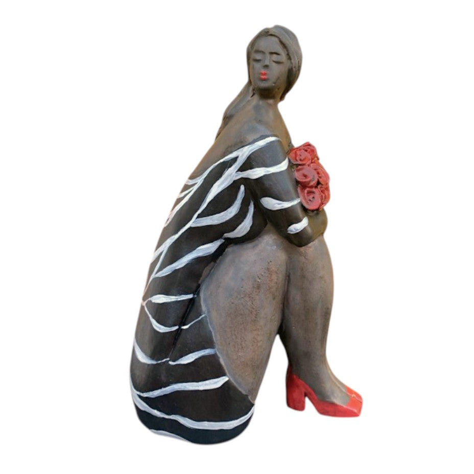 Keramisch Zittend Beeld "Happy" - Zittende Vrouw van Keramiek - 22 cm hoog
