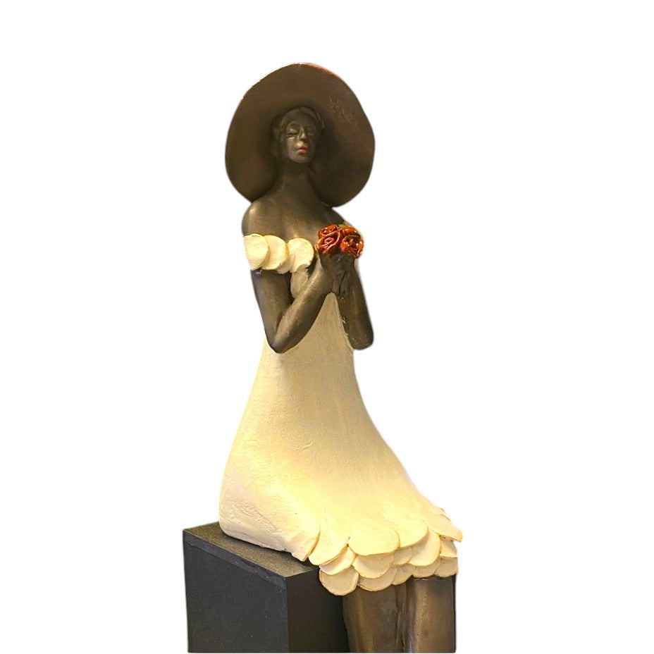 Verzonken in Gedachten incl. Houten Sokkel - Keramische Beeld - Keramiek - Bernadette te Wierik